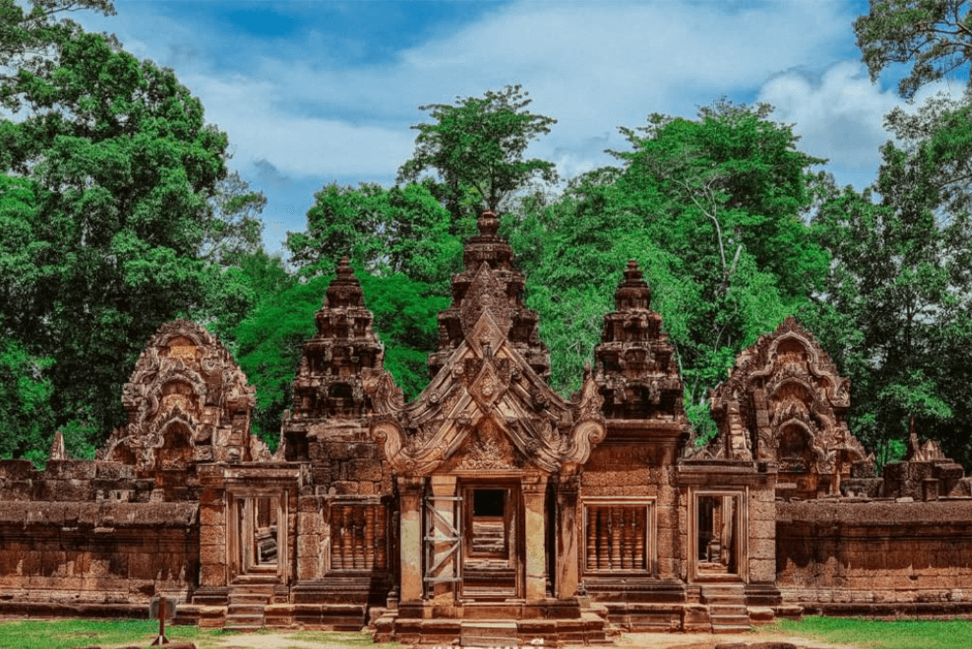 In the morning, you visit Banteay Srey, a small temple of sumptuously sculpted pink sandstone and often considered the jewel of Khmer art.