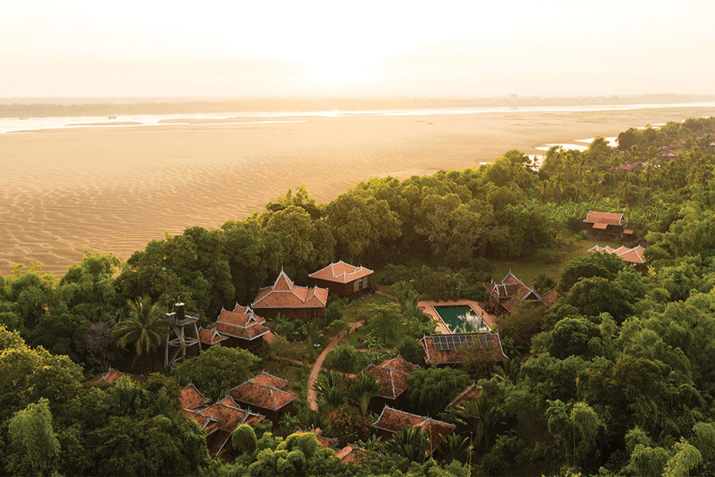 After breakfast visit the river port and the market of Kampong Chhang then transfer to Kratie where you arrive in the afternoon. Cross the ferry to reach Koh Trong. Bike ride around the island and the floating village. Lunch in a local restaurant.