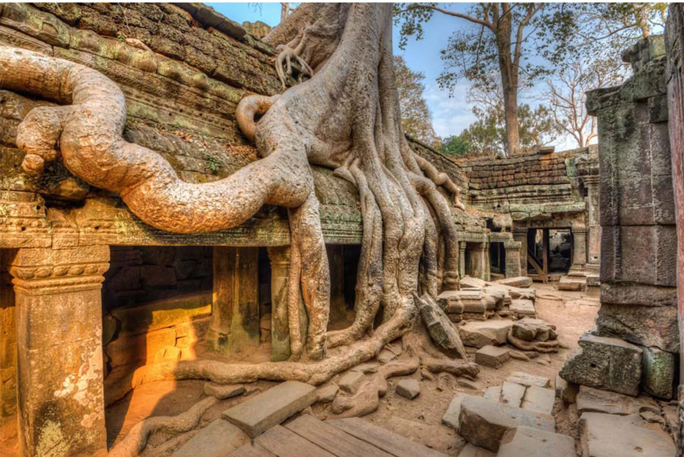 Explore the labyrinth of Ta Prohm which is also known as the “Tomb Raider” temple with secret chambers surrounded by climbing vines. Lunch at a local restaurant.