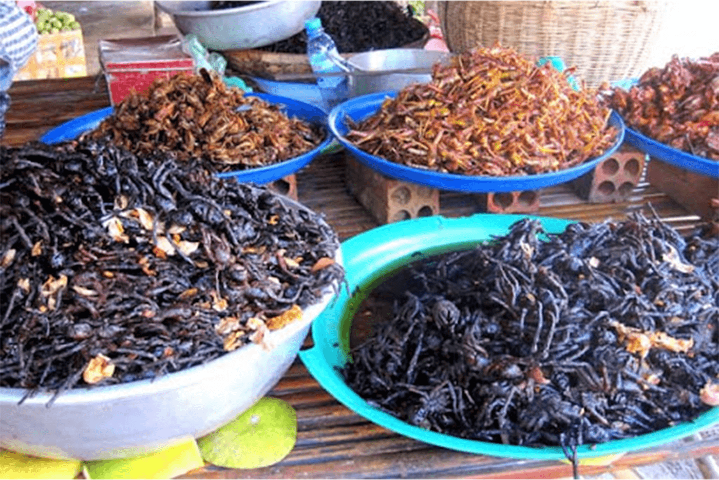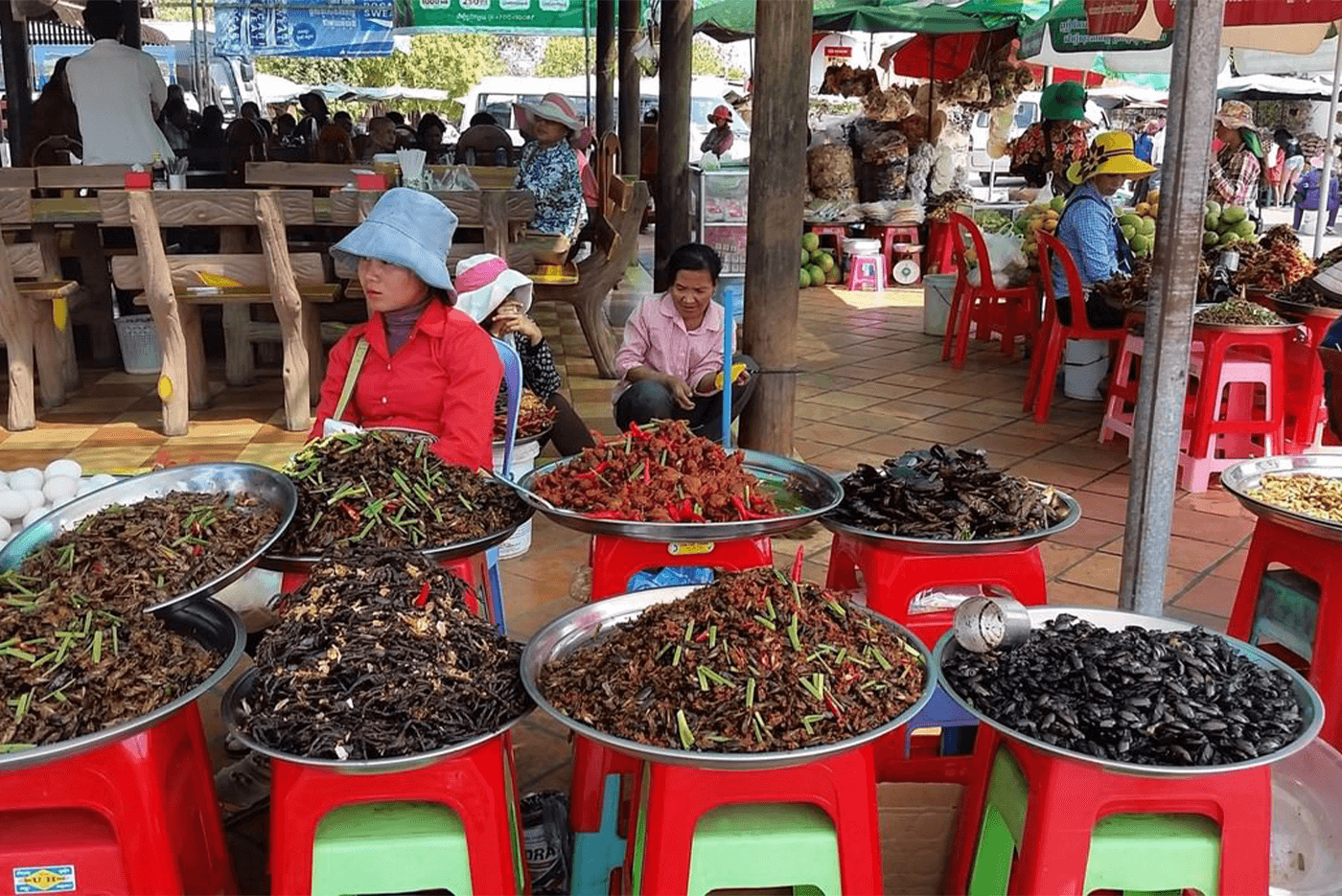 Morning drive to Siem Reap via Skun village. This peaceful little town 70km from Phnom Penh is far from the modernity of the latter. Time has stopped with inhabitants who live outside of time. Skun's specialty is fried tarantulas: crunchy on the outside with a chicken taste on the inside. Tasting if you wish! If tarantulas are not to your taste, do not worry, many insect stalls (crickets, silkworms, grasshoppers, scorpions, ...) are also sold on this market!