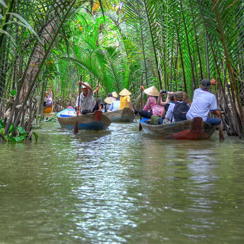 Enjoy a leisurely morning before flying to Saigon. Upon arrival, savor a traditional Vietnamese lunch before traveling to the Mekong Delta. Explore the local canals, visit Thoi Son Island, and discover traditional crafts like coconut candy-making.