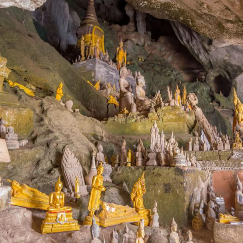 This memorable day begins with partaking in a morning alms ritual. After breakfast, embark on a two-hour boat trip along the Mekong River to the Pak Ou Caves, home to hundreds of Buddha statues.