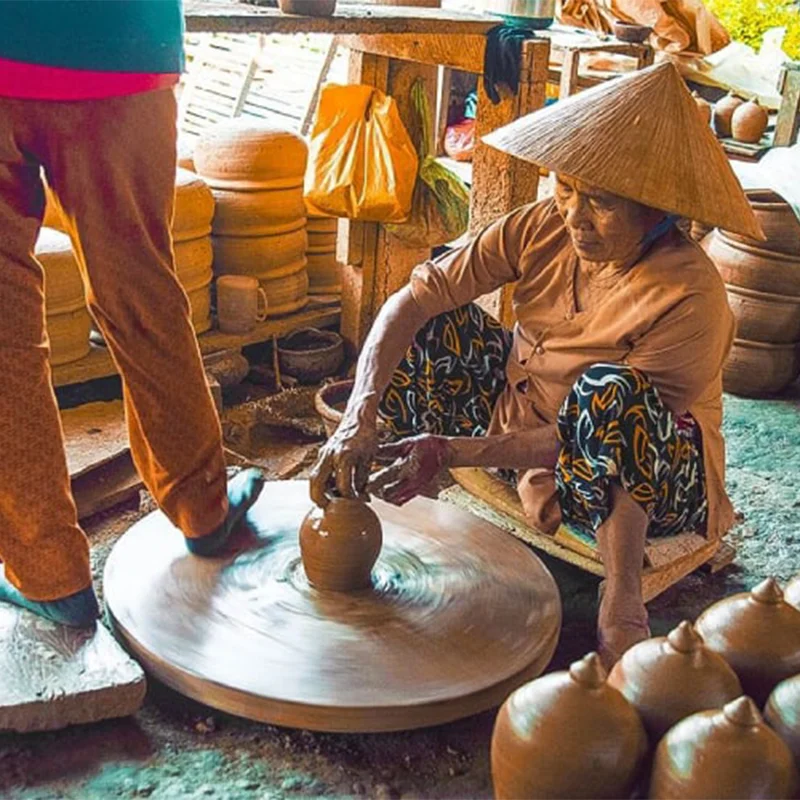 This morning, embark on a journey to the Mekong Delta, beginning with a visit to the Vinh Trang Pagoda, known for its intricate mosaics. Continue with a boat trip along the river to explore stilt houses, fruit plantations, and fishing villages. After lunch, visit the village of An Khanh, renowned for its fruit orchards and coconut sweets. In the evening, fly to Danang and transfer to Hoi An for check-in.
