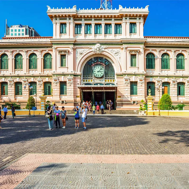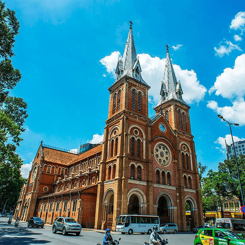 Fly to Ho Chi Minh City, Saigon, the largest Vietnamese city. There are street markets, sidewalk cafes and sleek new bars. This teeming metropolis offers 300 years of timeless traditions and the beauty of an ancient culture. To the west of the city is the huge Chinese neighborhood called Cholon, which means "Big Market." Notre Dame Cathedral, in the heart of Saigon's government quarter, is of neo- Romanesque architecture with two high square tower and iron spires. The Central Post Office is French-style and City Hall, known as "Hotel de Ville," is typical of the French architecture that would be seen in any village in France. Visit the War Remnants Museum, featuring collections of weapons and photographs from the two Indochina wars. Stay overnight in Ho Chi Minh City.