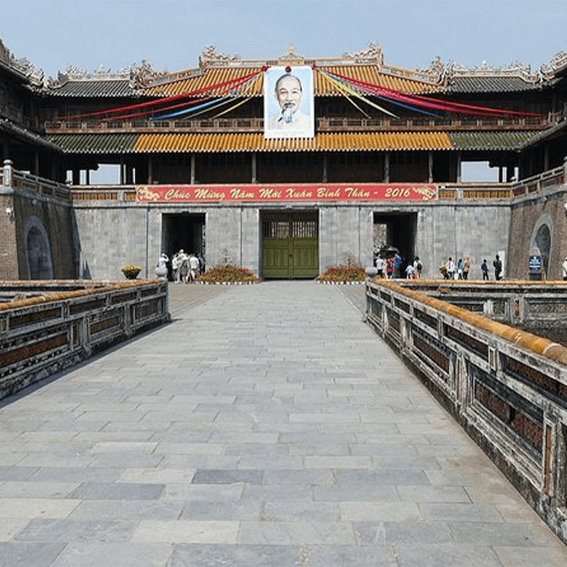 Spend full day to visit Hue City, Vietnam's political capital from 1802 to 1945 under the 13 emperors of the Nguyen Dynasty. Traditionally, the city has been one of Vietnam's cultural, religious and educational centers. Visit the Imperial City, which is located in the Citadel. Modeled after the Forbidden City in Beijing, the Imperial City was built in the early 19th century. Explore the Thai Hoa Palace, with its spacious hall and ornate roof of huge timbers supported by 80 carved and lacquered columns. See the Halls of the Mandarins, the Nine Dynastic Urns and the site where the Forbidden Purple City once stood. Overnight in Hue City.