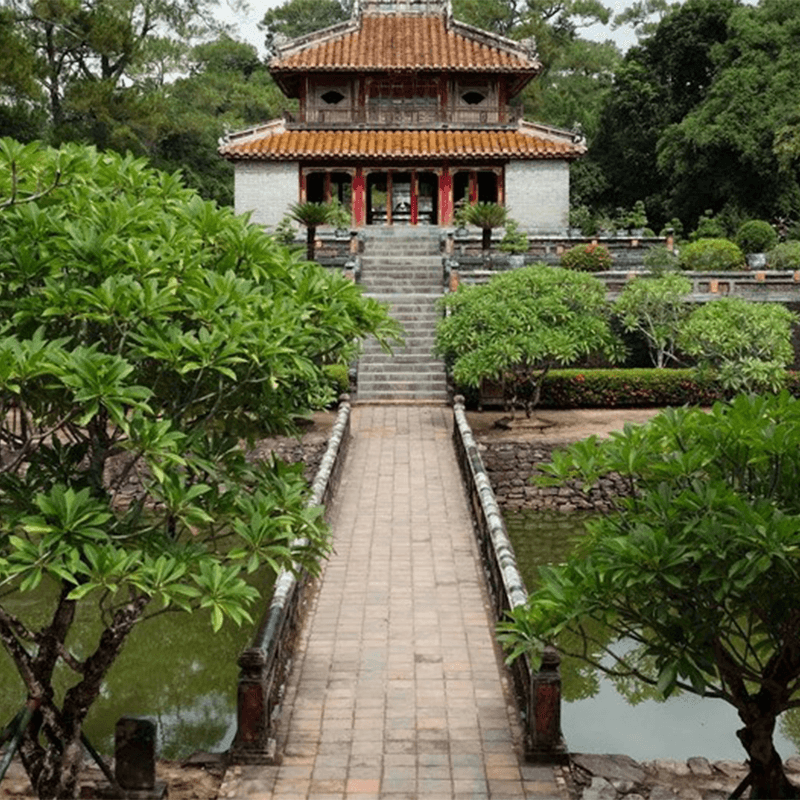 Just outside Hue, visit the Thien Mu Pagoda on the bank of the Perfume River, which was a hotbed of anti-government protest during the early 1960s. Next, visit the complex of the Tomb of Emperor Minh Mang, built in 1840, which is known for its magnificent architecture and elaborate decorations and is considered one of Hue's most beautiful pagodas. After lunch at a local restaurant, visit Tu Duc Tomb, which was built for meditation, reading and theater performances in a tranquil setting of forested hills and lakes. Your final stop is at Khai Dinh, the last monument of the Nguyen dynasty. It has a remarkably long staircase flanked by dragons, ceiling murals and ceramic frescoes. Return to your hotel on the riverbank where your Art Deco inspired rooms are reminiscent of the 1920s and 1950s. Overnight in Hue City.