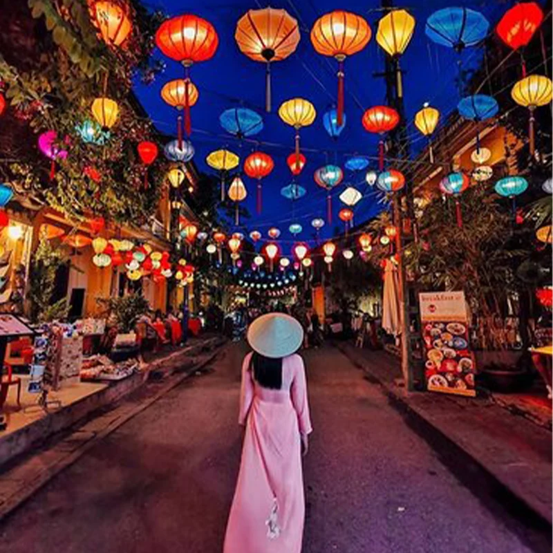 Today, journey south past the Hai Van Pass and Lanng Co, over a spur of the Truong Son Mountain Range that juts into the South East Sea, with spectacular views along the way. Upon arrival in Danang, visit the Cham Museum, which features a fine collection of openair sandstone carvings. Stop at My Khe Beach, made famous in the American TV series of the same name. It stretches for many miles north and south of the Marble Mountains. The Marble Mountains surrounding the area are five stone hillocks - once islands made of marble - and each is said to represent one of the five elements of the universe. There are many natural caves in which Buddhist sanctuaries have been built over the centuries. Transfer to Hoi An Ancient Town. Check in hotel & overnight in Hoi An.