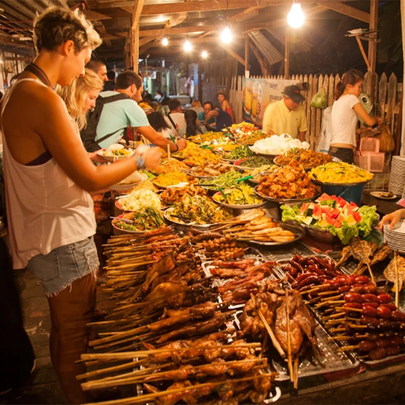 Lunch will be served near the caves, featuring a traditional Laotian dish called Orlam. Afterward, continue to the stunning Kuang Si Waterfall, stopping at: