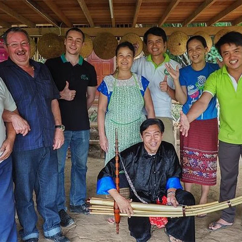 Today you will discover a little about the secret of bamboo work in Laos as well as enjoying some of the beautiful natures and rice fields surrounded just in Luang Prabang town. Begin your half day at The Bamboo Experience (Please arrive there by 8:30am) where you will meet with the rest of your group for an explanation of the bamboo works in Laos and its meaningful to Lao people. Your guide will show you the technique and/or the usage of each product as such fishing tools, music instruments etc. Start your simple bamboo weaving class with an expert (but patient!) teacher, try your hand at the knife sharpening, bamboo cutting (into pieces) and then try the traditional bamboo weaving for about one hour to complete your own mat to take home with, as a souvenir. Then, proceed to the bamboo cooking demonstration (you are free to assist) as such bamboo shoot soup, bamboo shoot steamed in banana leaf, fermented bamboo shoot dipping and sticky rice and more. Savour your creations at the end of the session in traditional Lao house (Pavilion style) overlooking the wonderful scenery and rice fields. The emphasis is to have fun and learn a little about bamboo work and bamboo dishes.