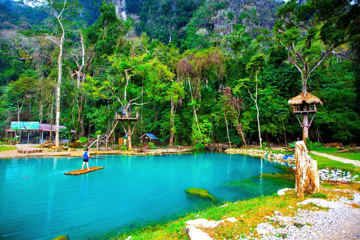 Then, transfer by private vehicle to Khouang Si waterfall. On the way, you can visit to the Lao ethnic minority groups – Ban Na Oune Village. Once at the waterfalls, take a leisurely hike through the national park towards the Khouang Si waterfalls and pass by the Asian bear rescue center. You will enjoy feeling the mist of the cool, turquoise waters of the different waterfalls. Swimming in the refreshing waters is possible.