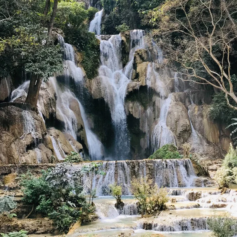 Afternoon, transfer by private vehicle to Khouang Si waterfall. On the way, you can visit to the Lao ethnic minority group at Ban Na Ouane Village, H’Mong Village. Once at the waterfalls, take a leisurely hike through the national park towards the Khouang Si waterfalls and pass by the Asian bear rescue center. You will enjoy feeling the mist of the cool, turquoise waters of the different waterfalls. Swimming in the refreshing waters is possible.